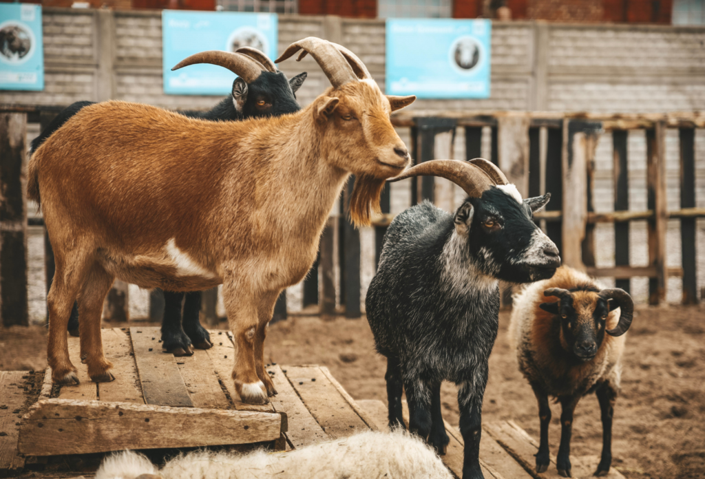 Kozy to jedne z najbardziej uroczych i zabawnych zwierząt w naszym stadzie. Są towarzyskie, ciekawskie i pełne energii, co sprawi, że zawsze można liczyć na ich niespodziewane wybryki. W naszej zagrodzie mieszka pięć kóz, które codziennie rozbawiają nas swoimi psotami. Kozy pochodzą z różnych zakątków świata, ale najbardziej znane są te żyjące w górach i na terenach wiejskich. Kozy to roślinożercy, co oznacza, że uwielbiają jeść trawkę, zioła i liście. Potrafią być naprawdę sprytne, dlatego bądźcie czujni, bo mogą przypadkowo ukraść Wam coś pysznego z kieszeni. Mają też wyjątkowy sposób na wyrażanie swoich emocji – “meczą”, mruczą i wydają śmieszne dźwięki w zależności od emocji, jakie w danej chwili czują.