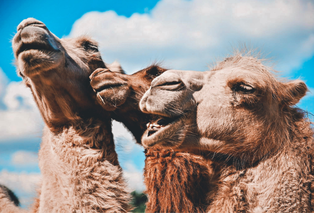 Wielbłądy dwugarbne, nazywane także baktrianami, to niezwykłe zwierzęta, które świetnie radzą sobie w trudnych warunkach. Ich dwa charakterystyczne garby pomagają magazynować zapasy tłuszczu będące źródłem energii. W naszej Zagrodzie mieszkają trzy wielbłądy: Stefan, Nel i Charlie. Każdy z nich ma swoja osobowość – Stefan to prawdziwy gwiazdor, Nel jest czujną obserwatorką stada, ma Charlie to rezolutny, rozbrykany młodzieniec z karmelowym ubarwieniem. Choć wielbłądy kojarzą się z pustynią, baktriany pochodzą z Azji Środkowej, gdzie przystosowały się do życia w zmiennych górskich regionach. Dzięki swoim dużym, mięsistym stopom, świetnie poruszają się po piasku i śniegu.