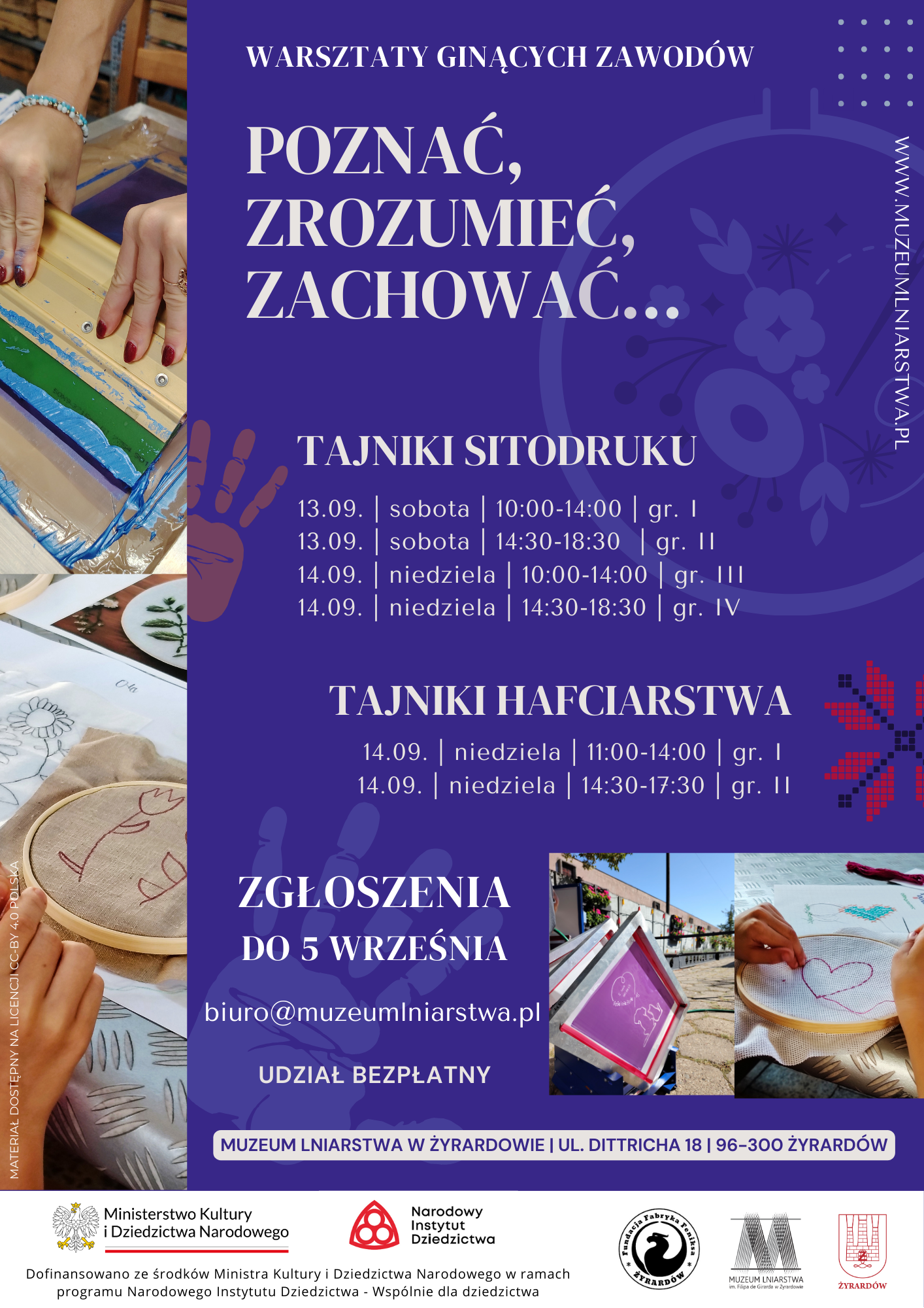 – informacja prasowa „Sitodruk, haft i szycie – Muzeum Lniarstwa zaprasza na bezpłatne warsztaty”