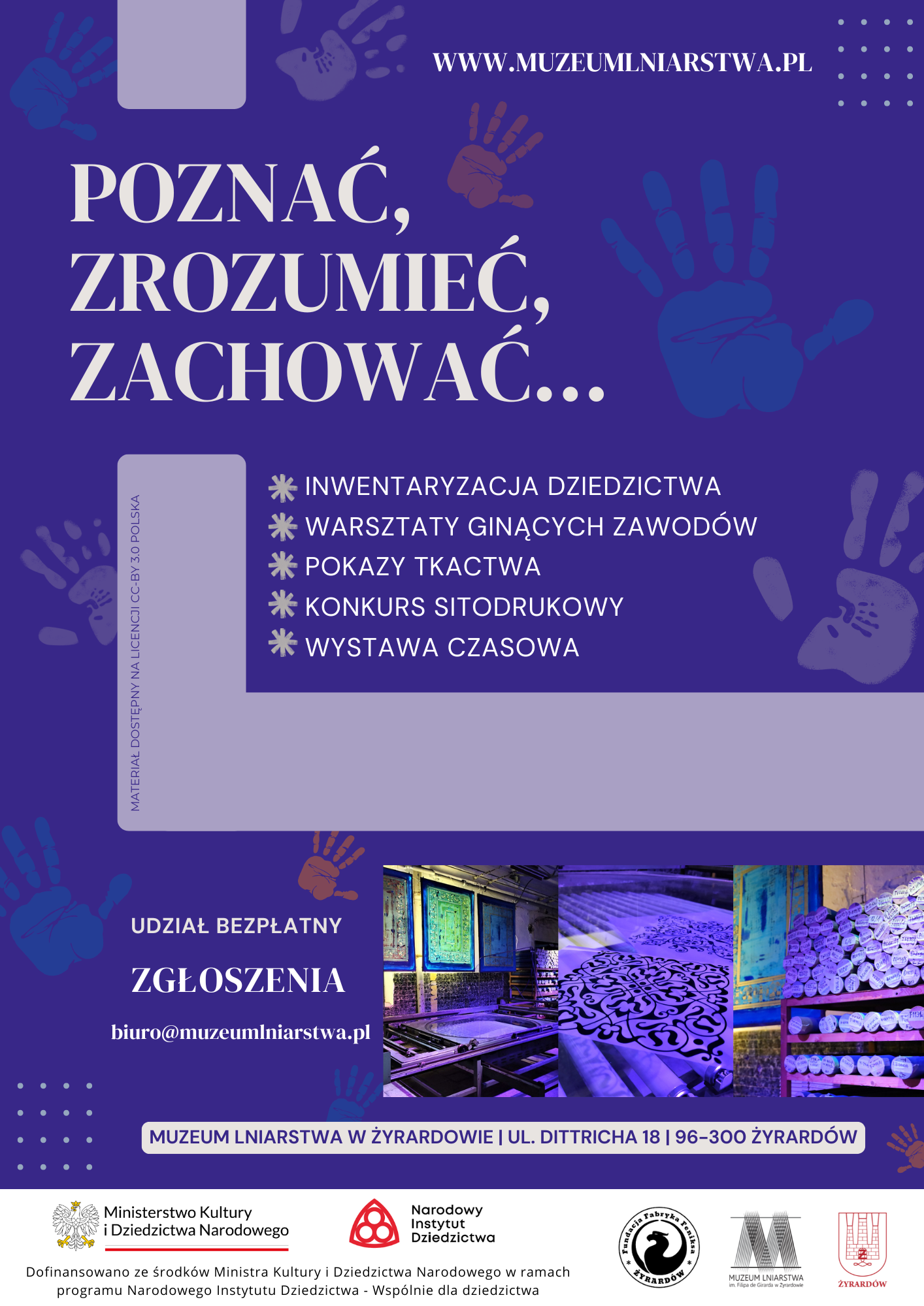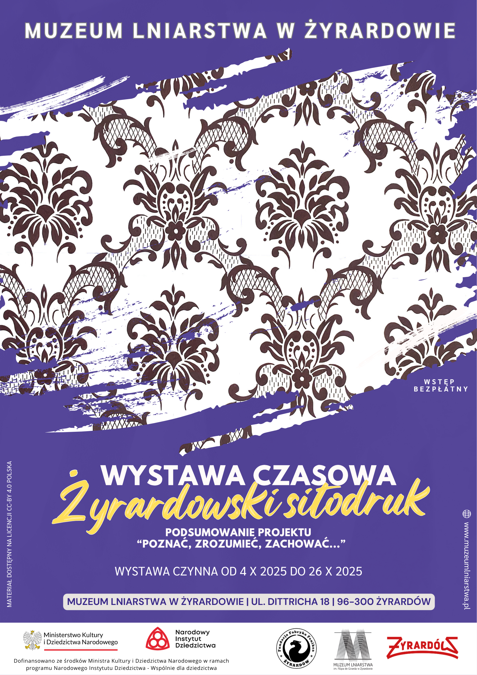 Celem projektu była ochrona, dokumentacja i popularyzacja materialnych śladów żyrardowskiego przemysłu lniarskiego, niegdyś serca miasta i jego tożsamości. W centrum uwagi znalazły się unikalne folie sitodrukowe, zachowane w zasobach Muzeum Lniarstwa, które przed laty służyły do tworzenia wzorów tkanin produkowanych w Zakładach Lniarskich w Żyrardowie. W trakcie działań zinwentaryzowano i udokumentowano kilkaset historycznych folii, a wybrane wzory odtworzono w formie współczesnych odbitek, które można było zobaczyć na wystawie czasowej pt. „Żyrardowski sitodruk”. Ekspozycja prezentowała zarówno oryginalne motywy przemysłowe z lat 60.–80. XX wieku, jak i współczesne projekty inspirowane żyrardowską tradycją.